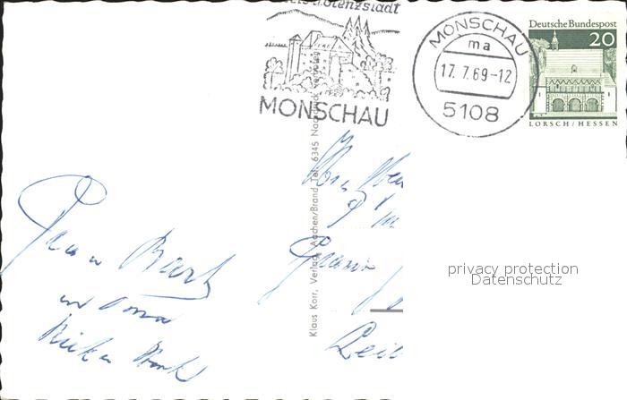 72165448 alte Postkarte Monschau Montjoie NRW mit Burg postalisch gelaufen Erhaltung siehe scans KatCode: 11110005354020