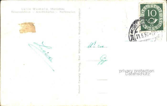 72432821 alte Postkarte Monschau Montjoie NRW mit Burgruine Haller postalisch gelaufen Erhaltung siehe scans KatCode: 11110005354020