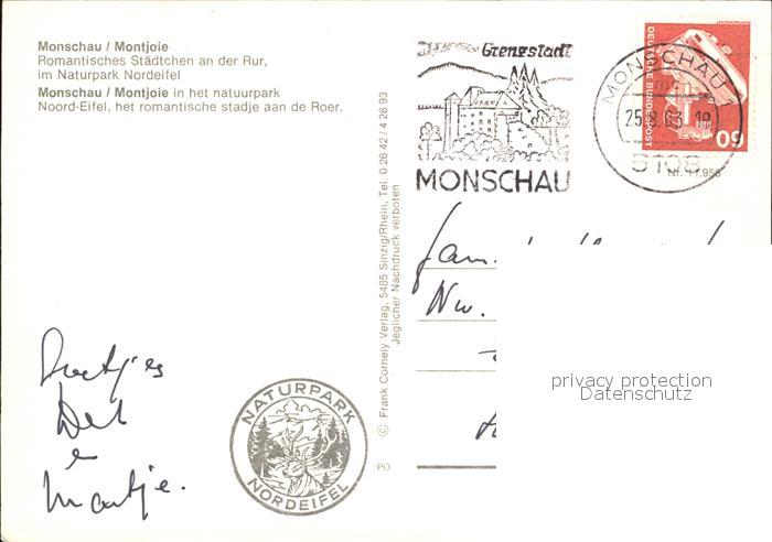 72412451 alte Postkarte Monschau Montjoie NRW Naturpark Nordeifel Rur Ortsansichten postalisch gelaufen Erhaltung siehe scans KatCode: 11110005354020
