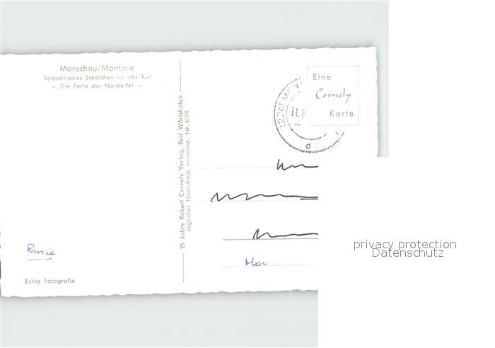 72077113 alte Postkarte Monschau Montjoie NRW Panorama postalisch gelaufen Erhaltung siehe scans KatCode: 11110005354020