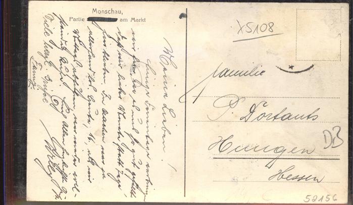 41493458 Monschau Montjoie NRW Partie am Markt postalisch gelaufen Erhaltung siehe scans Alte Ansichtskarte Postkarte alte Postkarte hz_W Katcode 11110005354020
