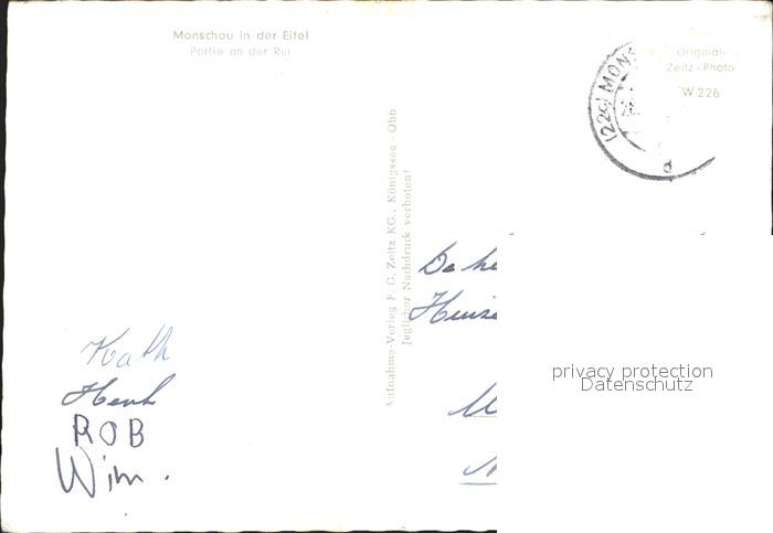 72170346 alte Postkarte Monschau Montjoie NRW Partie an der Rur postalisch gelaufen Erhaltung siehe scans KatCode: 11110005354020