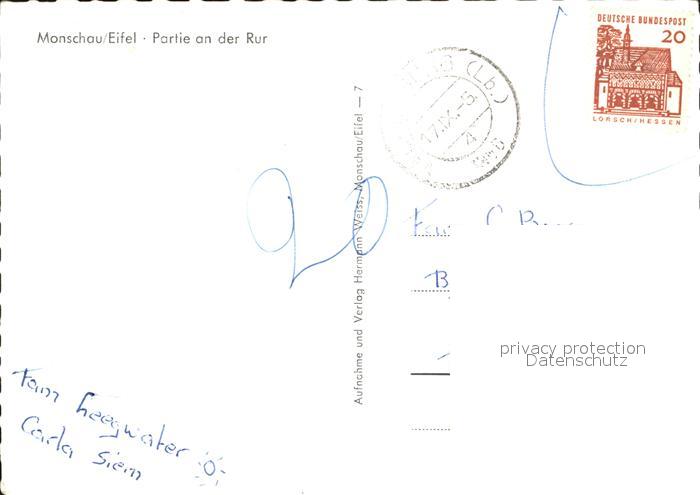 72403600 alte Postkarte Monschau Montjoie NRW Partie an der Rur Altstadt postalisch gelaufen Erhaltung siehe scans KatCode: 11110005354020
