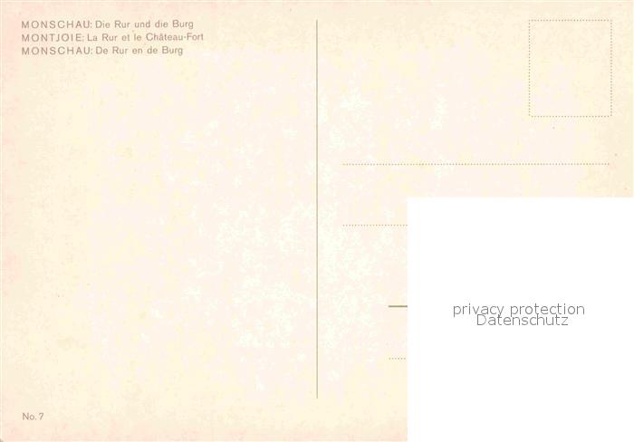 72914954 Monschau Montjoie NRW Partie an der Rur Blick zur Burg Herbststimmung postalisch nicht gelaufen Erhaltung siehe scans [FriedD77] KatCode: 11110005354020