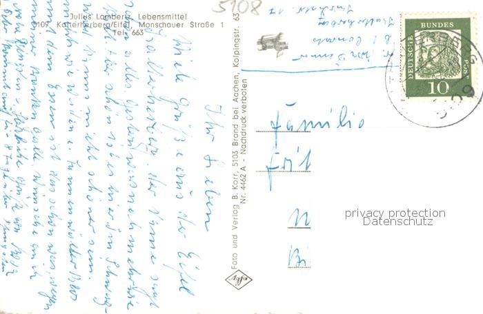 73694158 Monschau Montjoie NRW Perlbachtalsperre Eifel Hoefen Kalterherberg postalisch gelaufen Erhaltung siehe scans [LiesaD40] alte Postkarte Lies Katcode 11110005354020