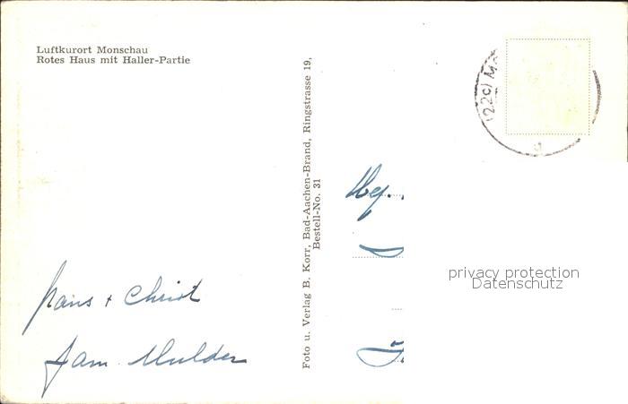 72034235 alte Postkarte Monschau Montjoie NRW Rotes Haus Haller Partie postalisch gelaufen Erhaltung siehe scans KatCode: 11110005354020