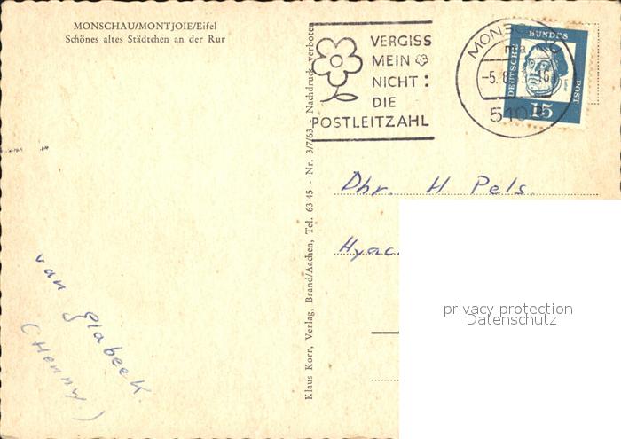 72605712 alte Postkarte Monschau Montjoie NRW Ruine postalisch gelaufen Erhaltung siehe scans [AndreD76] KatCode: 11110005354020