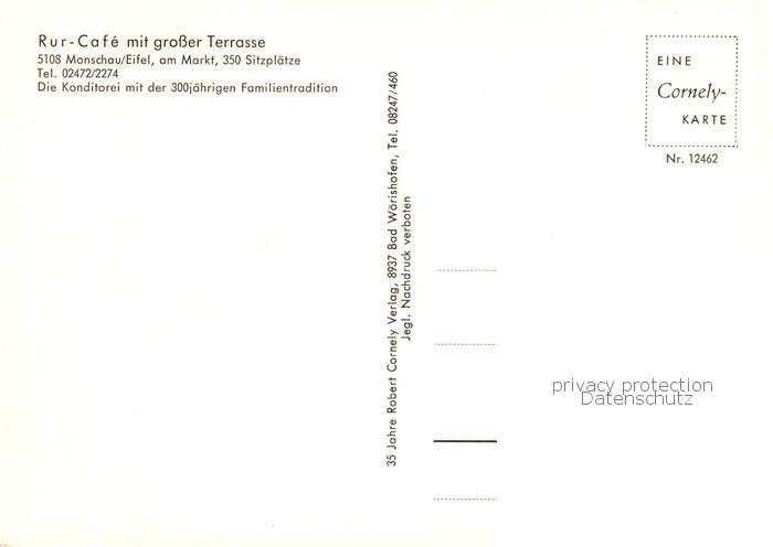 73844605 Monschau Montjoie NRW Rur Cafe mit grosser Terrasse postalisch nicht gelaufen Erhaltung siehe scans [FriedD77] Frie Katcode 11110005354020