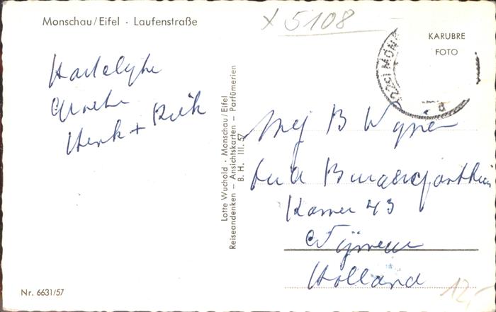 41493594 Monschau Montjoie NRW Rurpartie postalisch gelaufen Alte Ansichtskarte Postkarte alte Postkarte hz_W Katcode 11110005354020