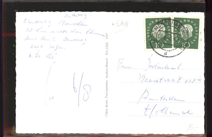 41493453 Monschau Montjoie NRW Rurpartie mit Blick auf Ruine Haller postalisch gelaufen Erhaltung siehe scans Alte Ansichtskarte Postkarte alte Postkarte hz_W Katcode 11110005354020