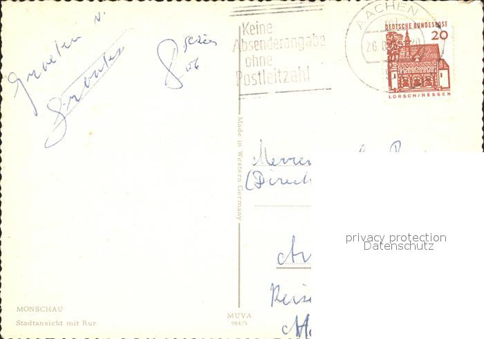 72298898 alte Postkarte Monschau Montjoie NRW Stadtansicht postalisch gelaufen Erhaltung siehe scans KatCode: 11110005354020