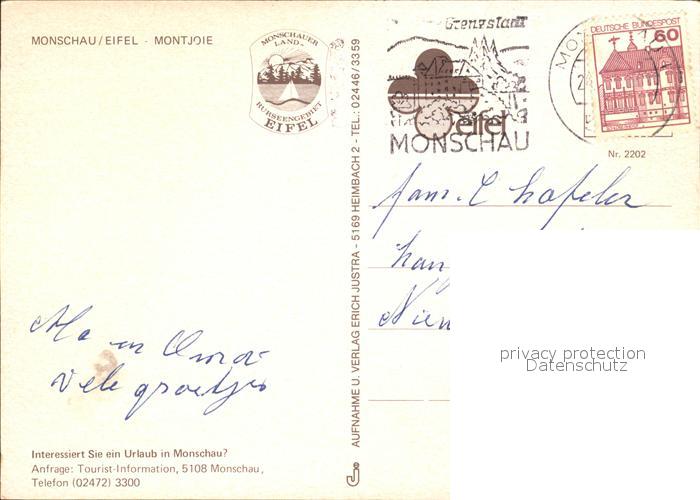 72303883 alte Postkarte Monschau Montjoie NRW Stadtansichten postalisch gelaufen Erhaltung siehe scans KatCode: 11110005354020