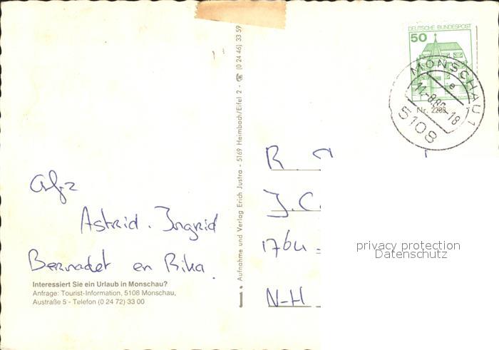72303803 alte Postkarte Monschau Montjoie NRW Stadtansichten postalisch gelaufen Erhaltung siehe scans KatCode: 11110005354020