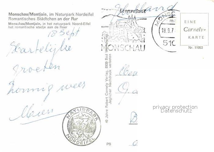 72772428 alte Postkarte Monschau Montjoie NRW Strassenpartie postalisch gelaufen Erhaltung siehe scans [WerneD78] KatCode: 11110005354020