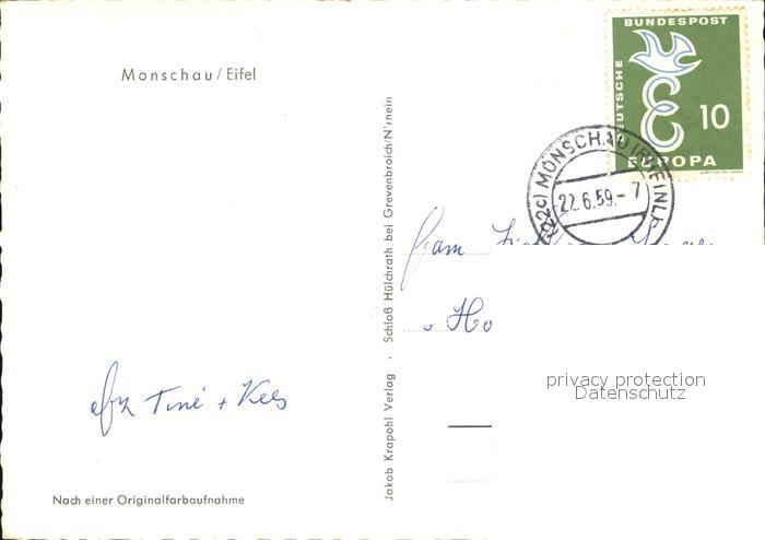 72463175 alte Postkarte Monschau Montjoie NRW Teilansicht postalisch gelaufen Erhaltung siehe scans KatCode: 11110005354020