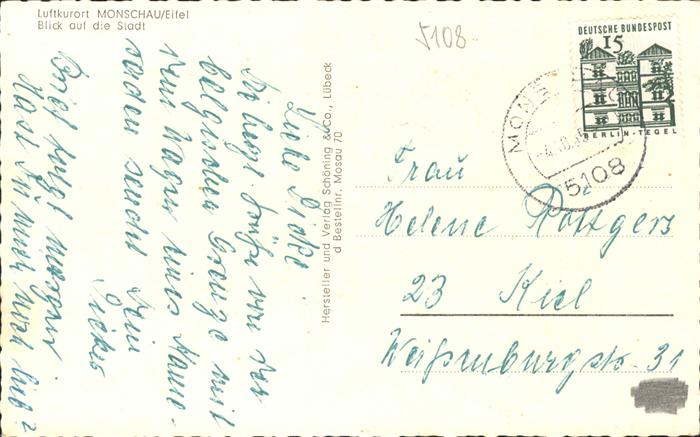 41288968 Monschau Montjoie NRW Teilansicht Monschau Kirche postalisch gelaufen gute Erhaltung Alte Ansichtskarte Postkarte alte Postkarte hz_F Katcode 11110005354020