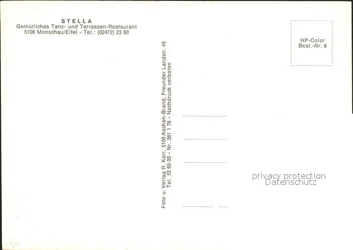 72157385 Monschau Montjoie NRW Terrassen Restaurant Stella postalisch nicht gelaufen Erhaltung siehe scans KatCode: 11110005354020