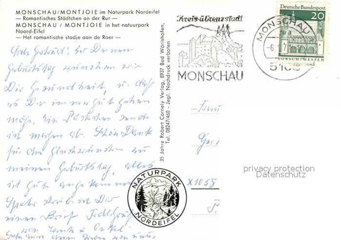 72917130 alte Postkarte Monschau Montjoie NRW postalisch gelaufen Erhaltung siehe scans [NatalD47] KatCode: 11110005354020