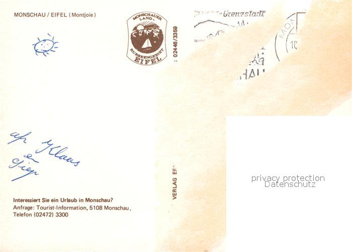 72940064 alte Postkarte Monschau Ortsansicht mit Kirche postalisch gelaufen Erhaltung siehe scans [FriedD77] KatCode: 11110005354020