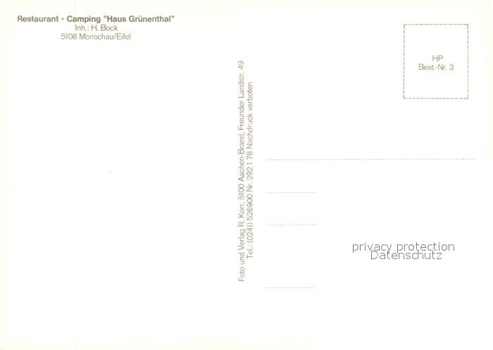 73574341 Monschau Restaurant Camping Haus Gruenenthal Kaminzimmer postalisch nicht gelaufen Erhaltung siehe scans [FriedD77] KatCode: 11110005354020