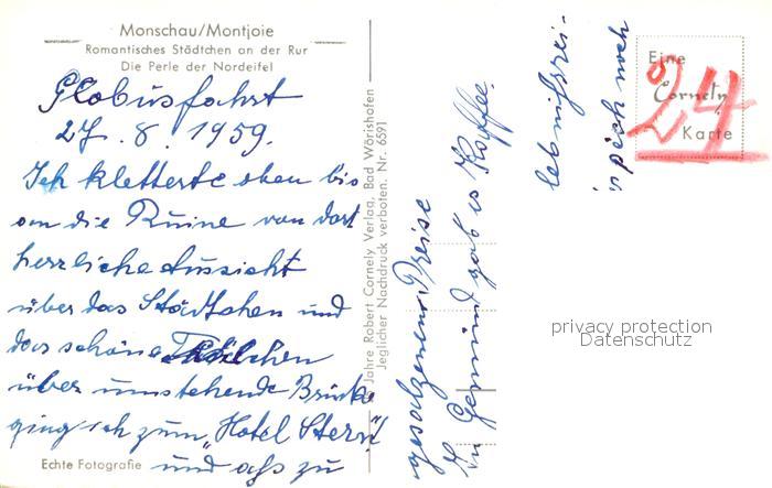 72944684 Monschau Romantisches Staedtchen an der Rur Perle der Nordeifel Kirche postalisch nicht gelaufen Erhaltung siehe scans [FriedD77] KatCode: 11110005354020