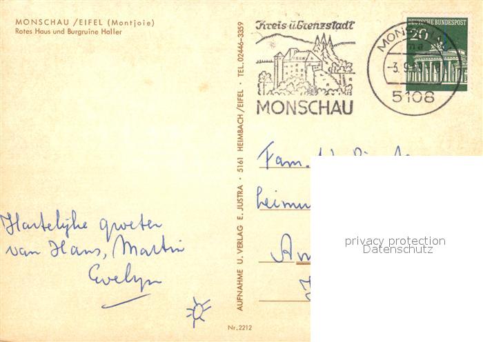 73311374 alte Postkarte Monschau Rotes Haus Burgruine Haller postalisch gelaufen Erhaltung siehe scans [KathaD81] KatCode: 11110005354020