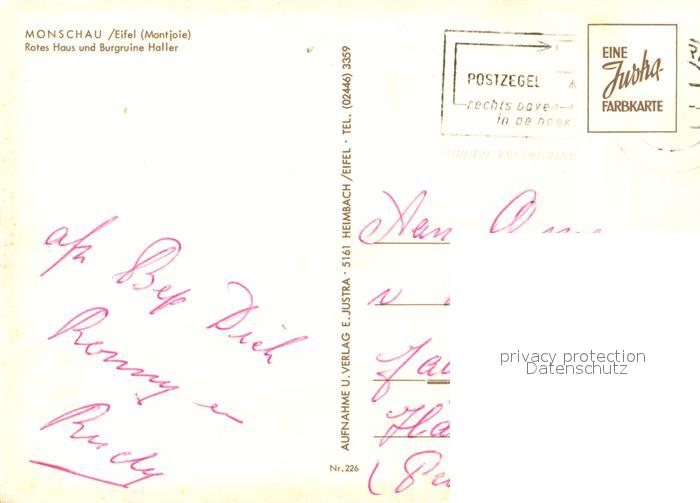 73311275 alte Postkarte Monschau Rotes Haus Burgruine Haller postalisch gelaufen Erhaltung siehe scans [KathaD81] KatCode: 11110005354020