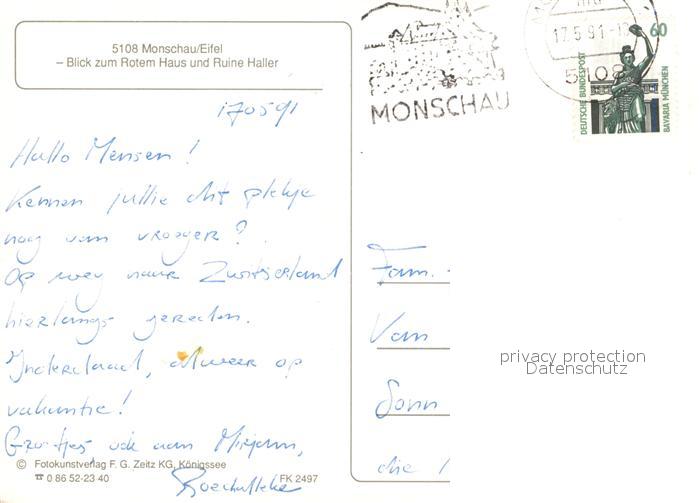 73311850 alte Postkarte Monschau Rotes Haus Ruine Haller postalisch gelaufen Erhaltung siehe scans [KathaD81] KatCode: 11110005354020