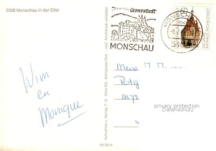 73047703 alte Postkarte Monschau Rurpartie Rotes Haus Burgruine Haller postalisch gelaufen Erhaltung siehe scans [WerneD78] KatCode: 11110005354020
