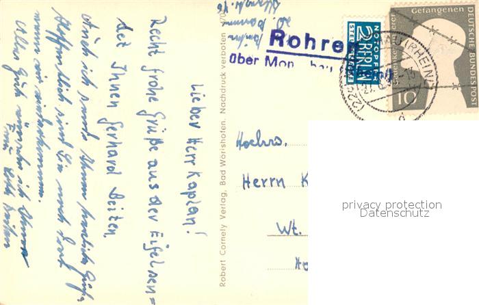 73559493 alte Postkarte Monschau Stadtbild mit Burg und Rur postalisch gelaufen Erhaltung siehe scans [FriedD77] KatCode: 11110005354020