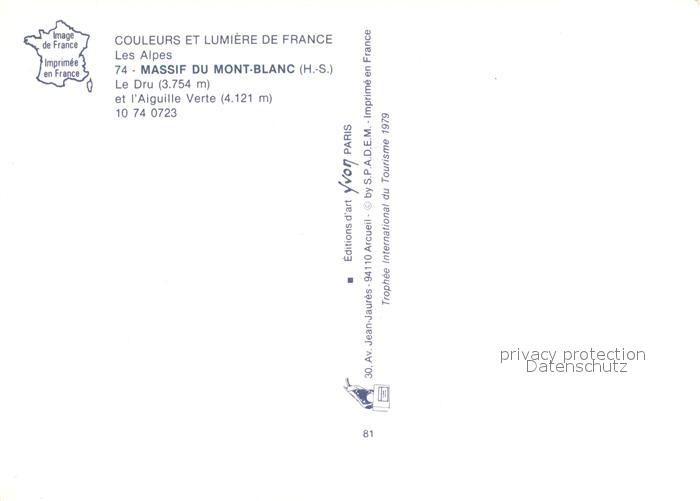 13628061 Mont Blanc Le Dru et l’Aiguille Verte postalisch nicht gelaufen Erhaltung siehe scans [WerneD78] Wern Katcode 11170074274056