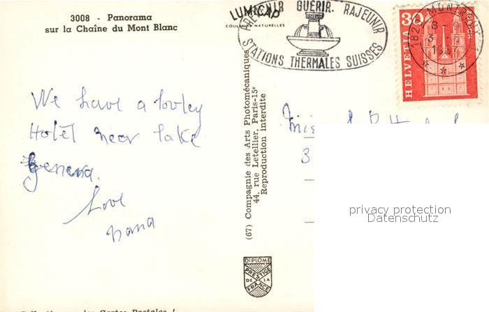 13061625 carte postale Mont Blanc Panorama sur la Chaine du Mont Blanc postalisch gelaufen Erhaltung siehe scans [WerneD78] KatCode: 11170074274056