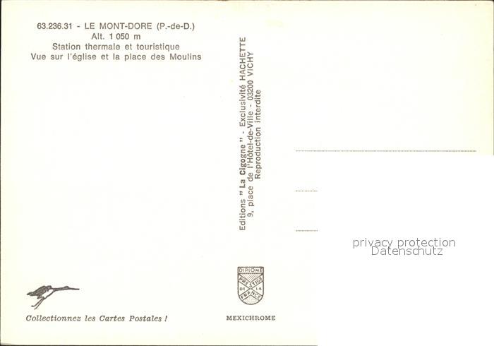 12328919 Mont-Dore Station thermale et touristique Ve sur l’eglise et la place des Moulins postalisch nicht gelaufen Erhaltung siehe scans KatCode: 11170063263236