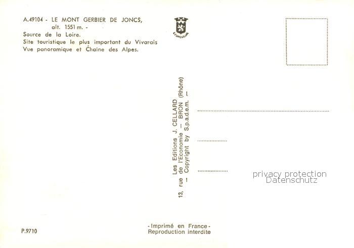 Mont Gerbier de Jonc Source de la Loire Chaîne des Alpes Mont Blanc vue aérienne postalisch nicht gelaufen Erhaltung siehe scans [FriedD77]