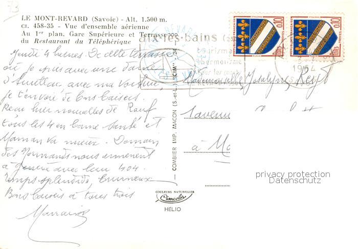 13593195 Mont Revard Gare Superieure Restaurant du Téléphérique Alpes vue aérienne postalisch gelaufen Erhaltung siehe scans [FriedD77] carte postale Frie Katcode 11170073273008