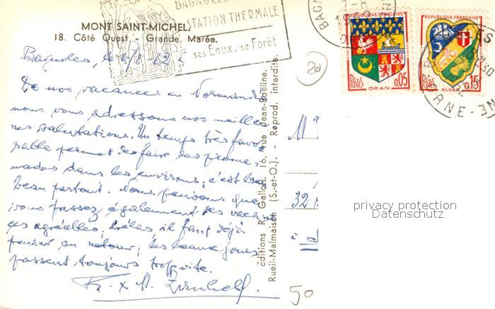 13506671 carte postale Mont-Saint-Michel Côté ouest a grande marée postalisch gelaufen Erhaltung siehe scans [FriedD77] KatCode: 11170050150411
