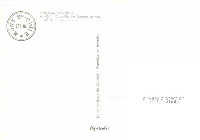 12772015 Mont-Sainte-Odile Mont-Ste-Odile Chapelle des Larmes postalisch nicht gelaufen Erhaltung siehe scans [LiesaD40] KatCode: 11170067567397