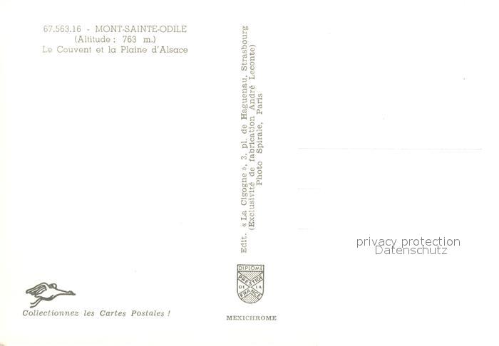 13631322 Mont-Sainte-Odile Mont-Ste-Odile Le Couvent et la Plaine d Alsace vue aérienne postalisch nicht gelaufen Erhaltung siehe scans [FriedD77] Frie Katcode 11170067567397