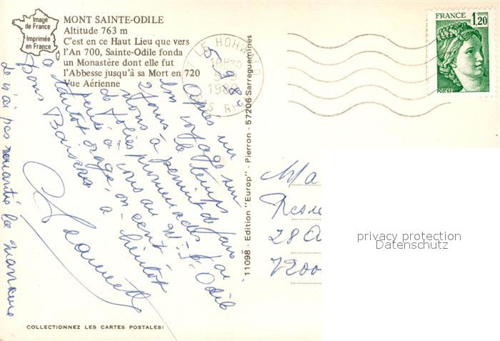 carte postale Mont-Sainte-Odile Mont-Ste-Odile Monastère vue aérienne postalisch gelaufen Erhaltung siehe scans [FriedD77]