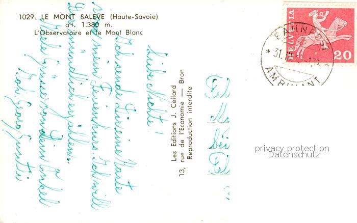 13800022 Mont Saleve 74 Haute-Savoie Observatoire et le Mont Blanc postalisch gelaufen Erhaltung siehe scans [FriedD77] carte postale Frie Katcode 11170074174299