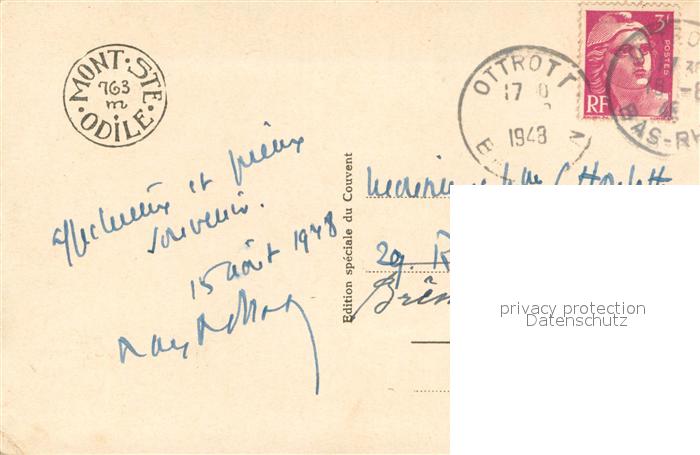 13732931 Mont-Ste-Odile Mont-Sainte-Odile Facade Nord Terrasse du Couvent postalisch gelaufen Erhaltung siehe scans [WerneD78] carte postale Wern Katcode 11170067567397