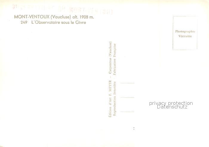 13640334 Mont Ventoux Observatoire sous le Givre en hiver postalisch nicht gelaufen Erhaltung siehe scans [FriedD77] Frie Katcode 11170084384069