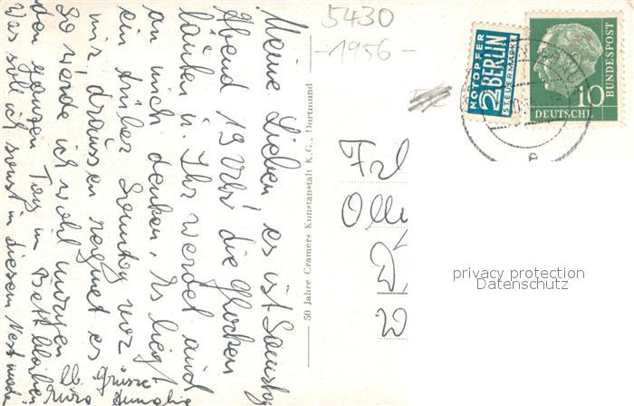 73706417 alte Postkarte Montabaur Westerwald Blick vom Himmelfeld Fliegeraufnahme Panorama Grosser Markt postalisch gelaufen Erhaltung siehe scans [WerneD78] KatCode: 11110007143048