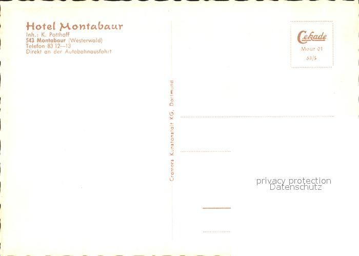72287849 Montabaur Westerwald Hotel Montabaur Restaurant postalisch nicht gelaufen Erhaltung siehe scans KatCode: 11110007143048