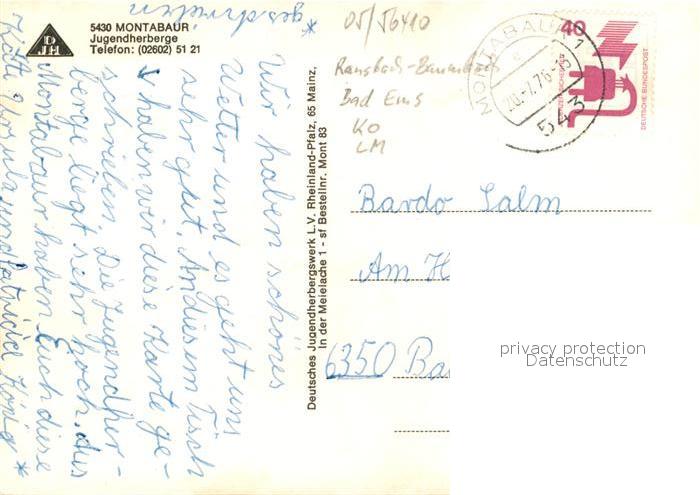 73197159 alte Postkarte Montabaur Westerwald Jugendherberge Empfangshalle Schloss Stadtpanorama postalisch gelaufen Erhaltung siehe scans [FriedD77] KatCode: 11110007143048