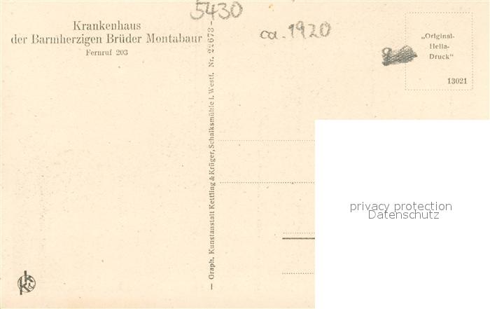 73696132 Montabaur Westerwald Krankenhaus der Barmherzigen Brueder postalisch nicht gelaufen Erhaltung siehe scans [WerneD78] Wern Katcode 11110007143048