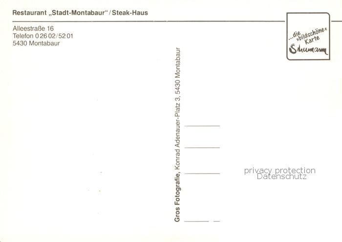 73846032 Montabaur Westerwald Restaurant Stadt Montabaur Steak Haus Gastraeume Terrasse postalisch nicht gelaufen Erhaltung siehe scans [FriedD77] KatCode: 11110007143048