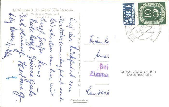 71906781 alte Postkarte Montabaur Westerwald Spielmanns Kurhotel Waldesruhe postalisch gelaufen Erhaltung siehe scans KatCode: 11110007143048