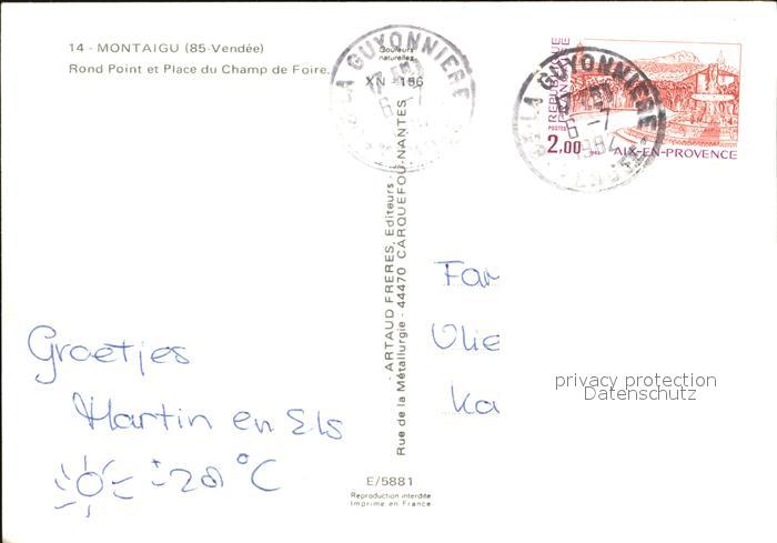 12430062 carte postale Montaigu Vendee Rond Point et Place du Champ de Foire postalisch gelaufen Erhaltung siehe scans KatCode: 11170085285146