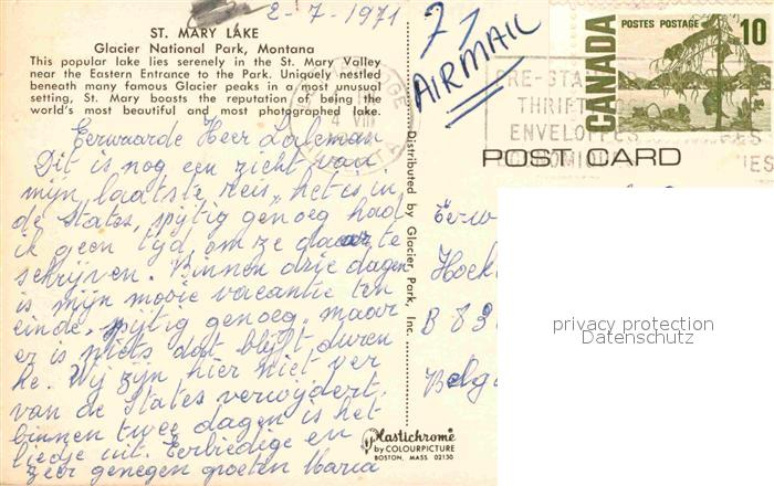 72891706 old postcard Montana US-State St. Mary Lake Galcier National Park postalisch gelaufen Erhaltung siehe scans [LiesaD40] KatCode: 14140280000000
